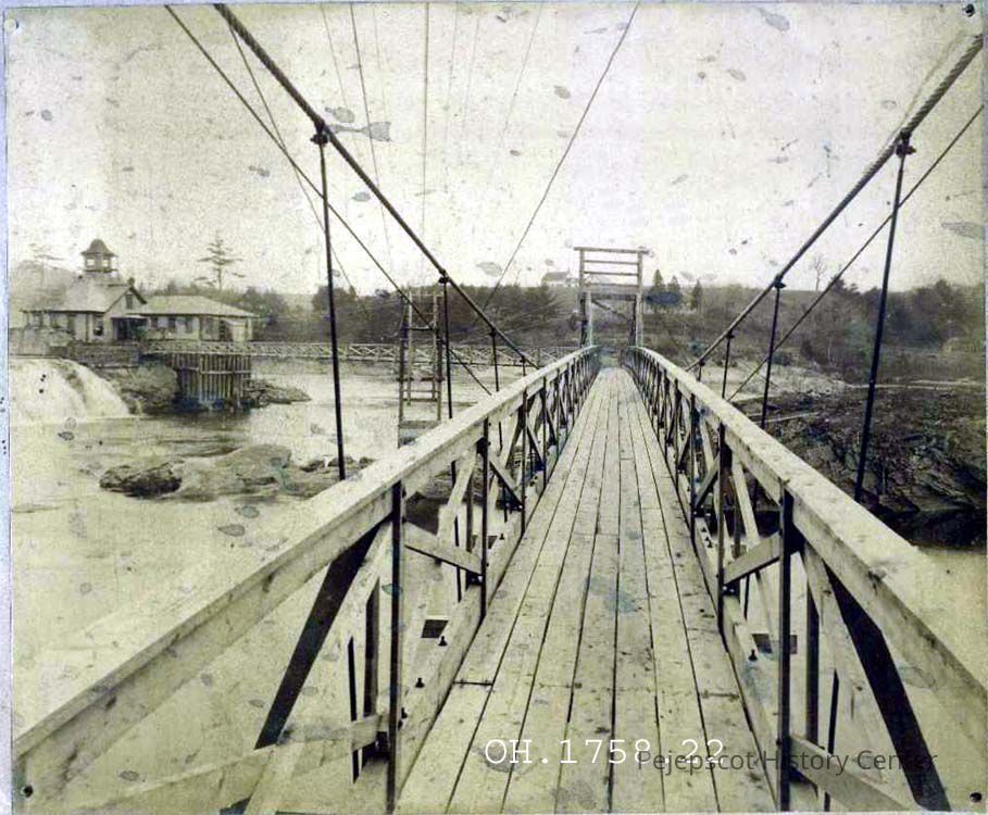The foot bridge at the lower falls with no damage. Taken looking towards Topsham, ME