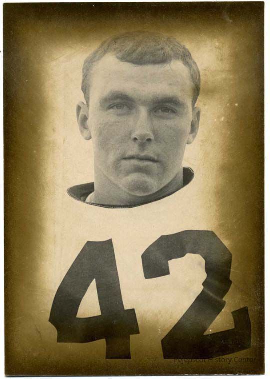 Photo of a young man in a football uniform with the number 42 on his uniform. The back reads "Soule, NEW NO..=24, Sep-1963."