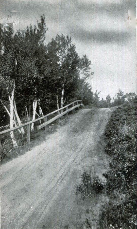 A B/W photo of a forest lane,