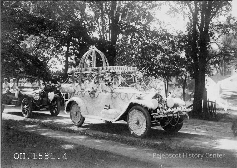 This decorated car won first prize for autos over 116-inch wheel base. The driver of the car was Margaret Day. Fourth of July Parade, Brunswick. ME. c. 1920