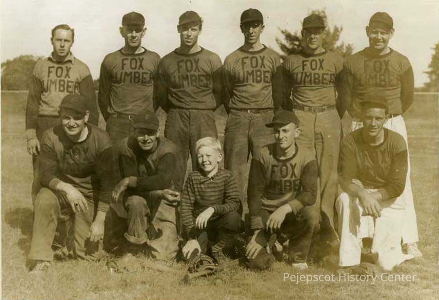 A B/W photograph of the Fox Lumber baseball team. Late 1930s.