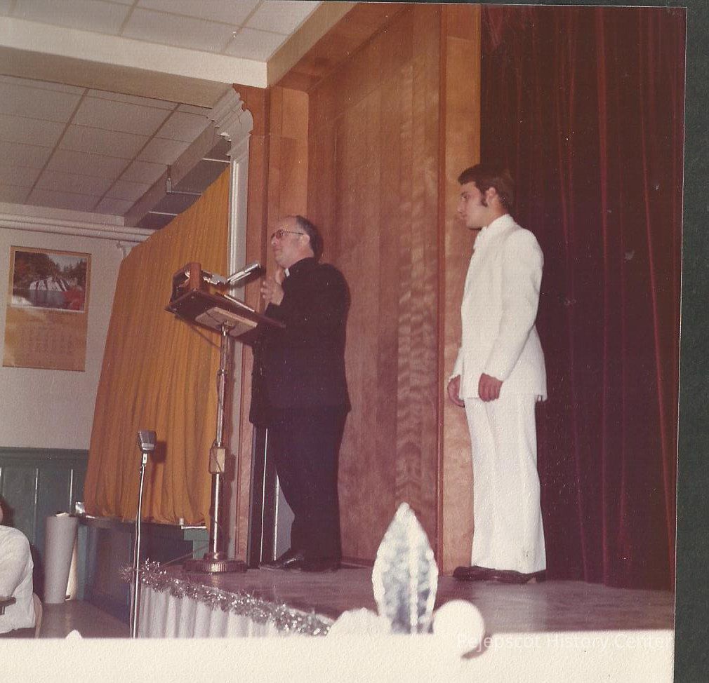 Fr. Emile Guilemette saying a few words of thanks to the audiance while Paul Brgeron look's on.Collection