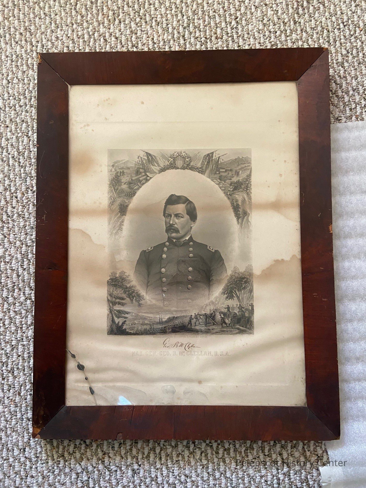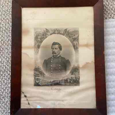 A framed print of Major General George B. McClellan. Undated