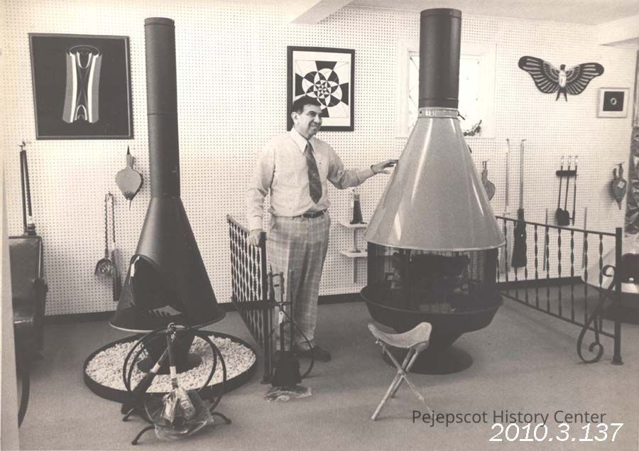 A B/W photograph of Frank Guerrera owner of "Where the Hearth Is" a stove store at the corner of Chamberlain and Harpswell Streets. Photo published 10/8/1975. Undated