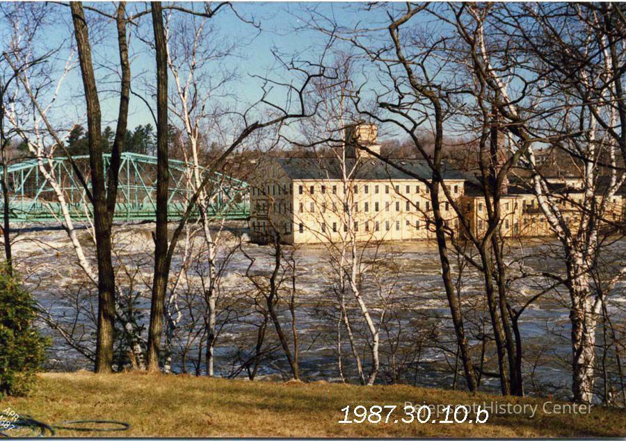 A color photograph looking at the Frank J. Wood Bridge and the Bowdoin Mill, Topsham, Maine from Water St. 815 Thursday April 2,1987.