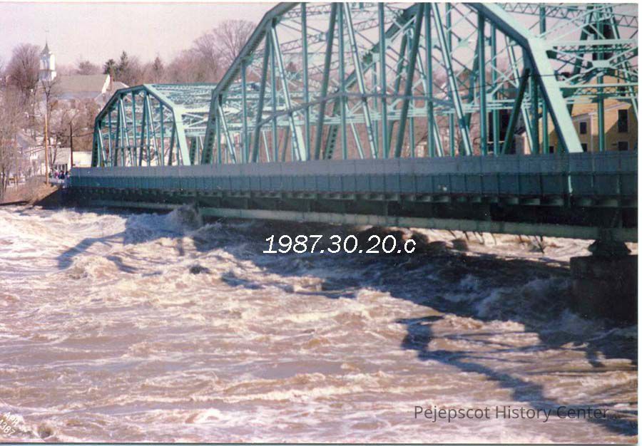 A color photograph of the Frank J. Wood Bridge, Brunswick/Topsham, Maine (taken from Brunswick side). Flood of April 2, 1987