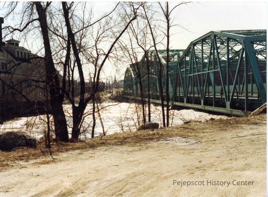 Floods - 1987, Floods - Topsham, Frank J. Wood Bridge, Bridges - Frank J. Wood Bridge, Pejepscot Paper Co. Mill