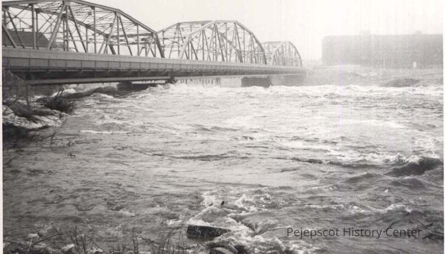 A B/W photograph of the Frank J. Wood Bridge during high water. Undated