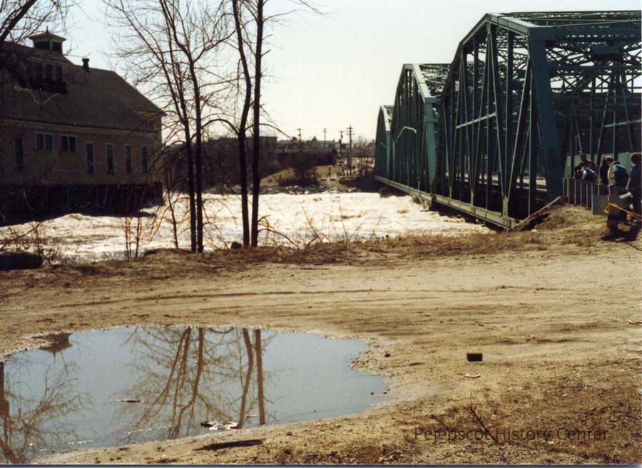 Floods - 1987, Floods - Topsham, Pejepscot Paper Mill, Bridges - Frank J. Wood Bridge