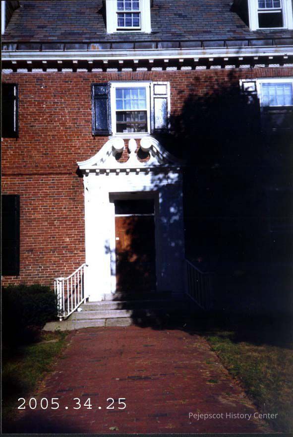 A color photograph of the front door to 228 Maine Street. This building was used as a fraternity for a time. See 2005.34.25.a for negative.