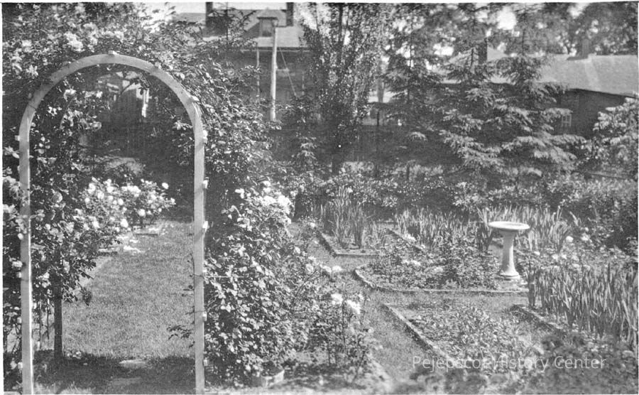 An undated black and white postcard of the garden at 9 Everett Street in Brunswick.