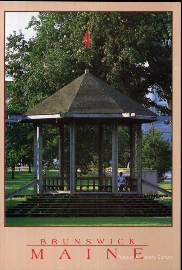 An undated color postcard shows the gazebo on the Mall in Brunswick, Maine.Collection