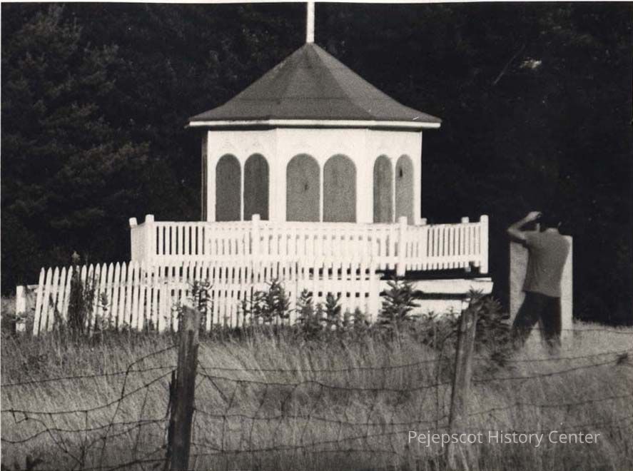 A B/W photograph of a Gazebo on the Rossmore Road. That is "Buggy" with the camera. Undated
