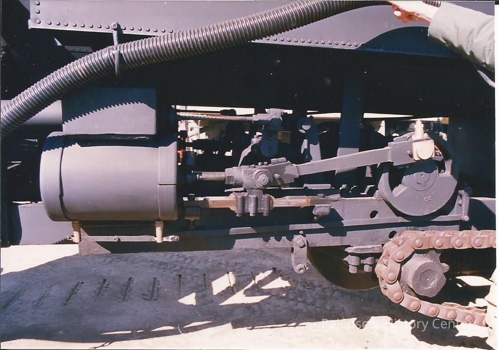A color photograph of the working gears on a Lombard Log Hauler. The backside of the photo reads