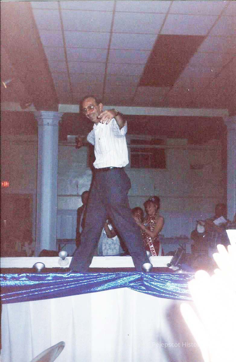 A color photograph of Gene Gagne walking on stage. CYO sponsored