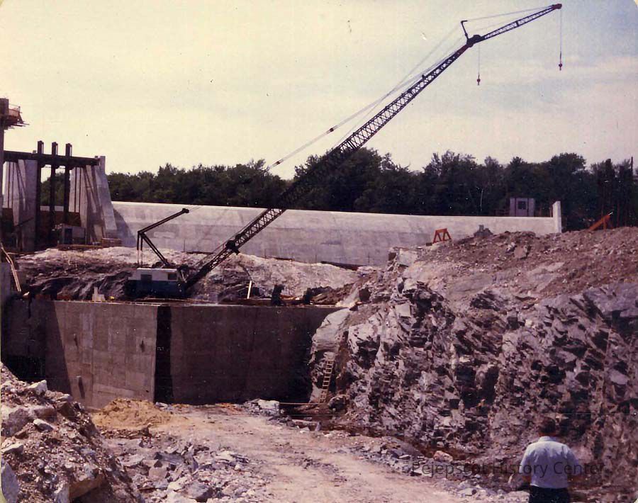 A color photo of the work area downstream of where the generating station was going to be. Undated