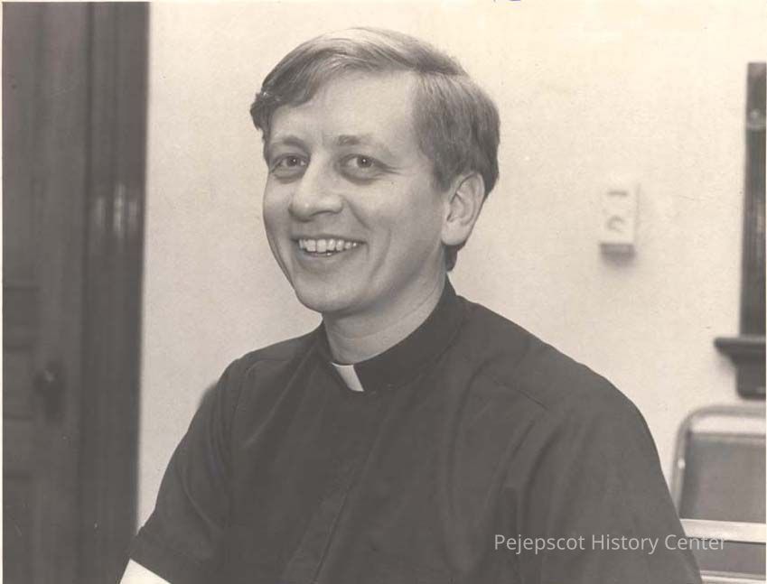 A black and white photo of Marist priest George Szal as published in The Times Record in Brunswick, Maine, on 12/9/1983.