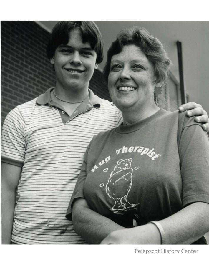 A black and white photograph of Glenda Wagner and her son, Brunswick, that was taken at Shop n Save Plaza. Written on the back: Cecilia Hirsch 1989, Glenda Wagner & son, Brunswick, Shop + Save Plaza.Lexicon