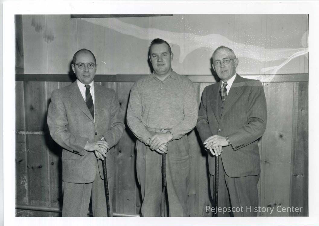 Johnny Brown, new golf pro, with Jim Browning, retiring golf pro, and Guy Patterson, on the right.