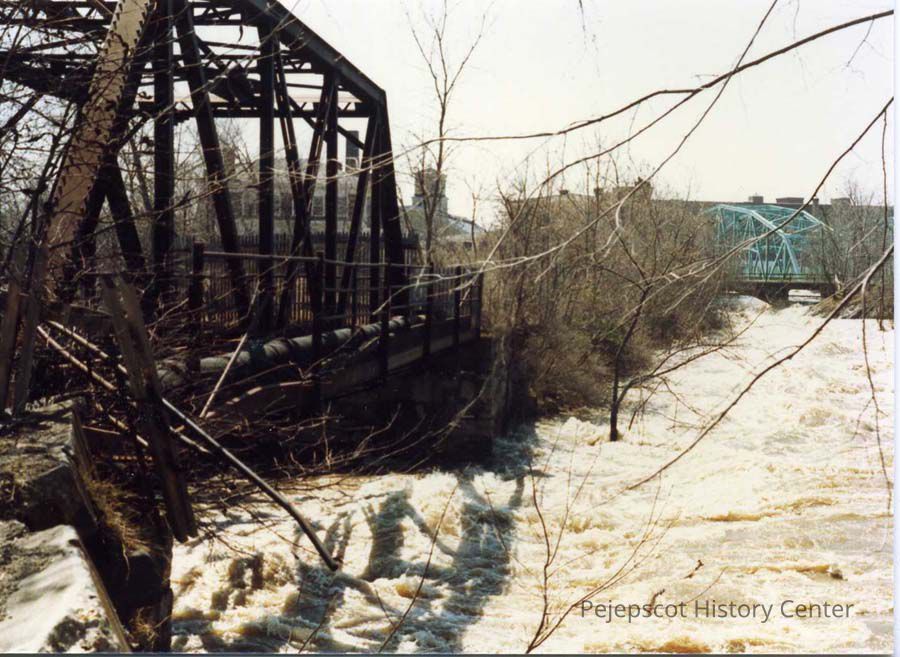 A color photo of the Granny Hole Stream in Topsham, Maine during the April 1987 Flood.
