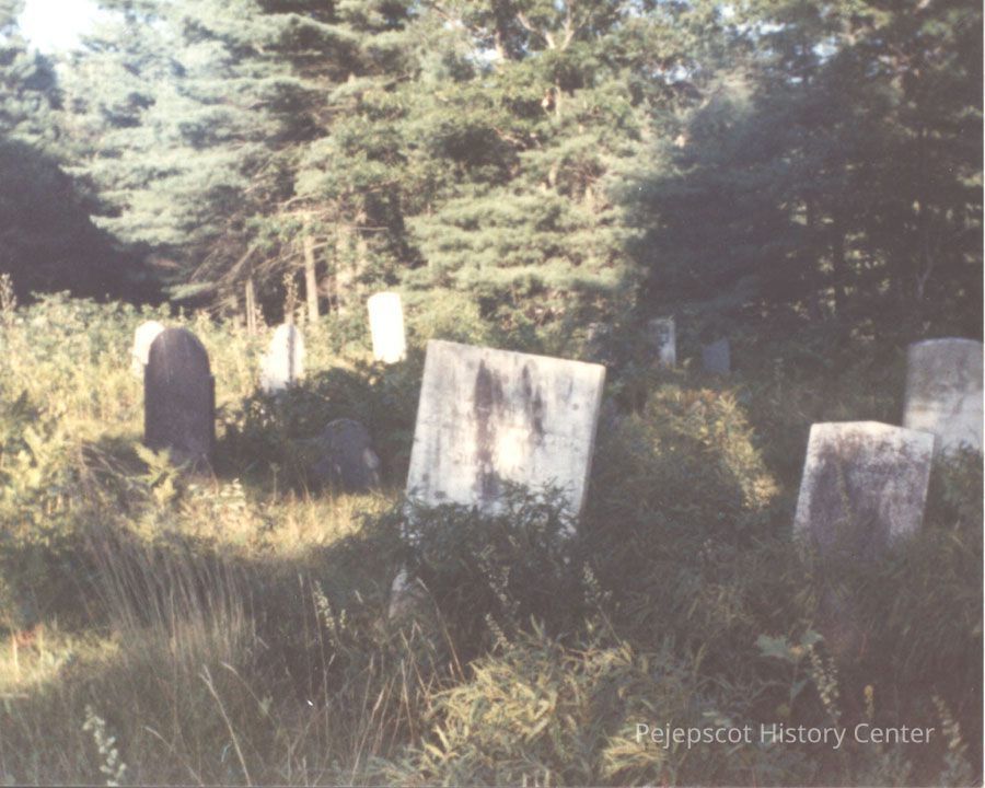 A color photo of gravestones in a cemetery. 9/1986. Marked on the back, "Sept 1986 Labor Day weekend. Neglected cemetery around the corner from Thomas Pt. Beach (Brunswick) Me. Some 'Crocketts' are buried here."