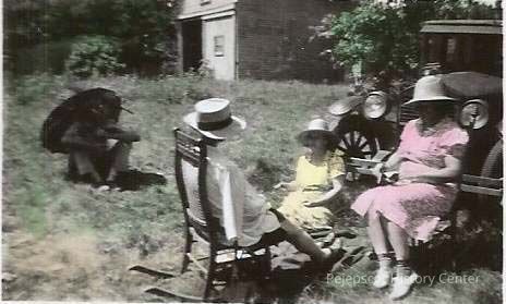 A color photograph of a group of unknown women sitting on a lawn. Undated