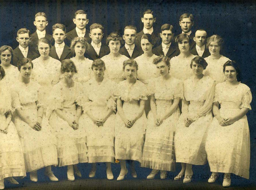 A B/W photograph of Brunswick students. Alice Whittier is seated in the second row and is the second individual from the left. This photograph was likely taken around, near, or in conjunction with Alice's graduation from Brunswick Grammar School in c.1917. Undated