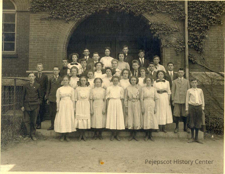 A B/W photograph of Isabel Whittier, she is in the 2nd row 2nd girl from the left. This photograph was taken at the Brunswick Grammar School. Undated This is a duplicate of 2016.101.