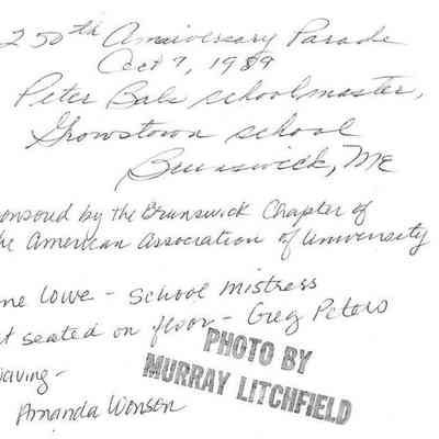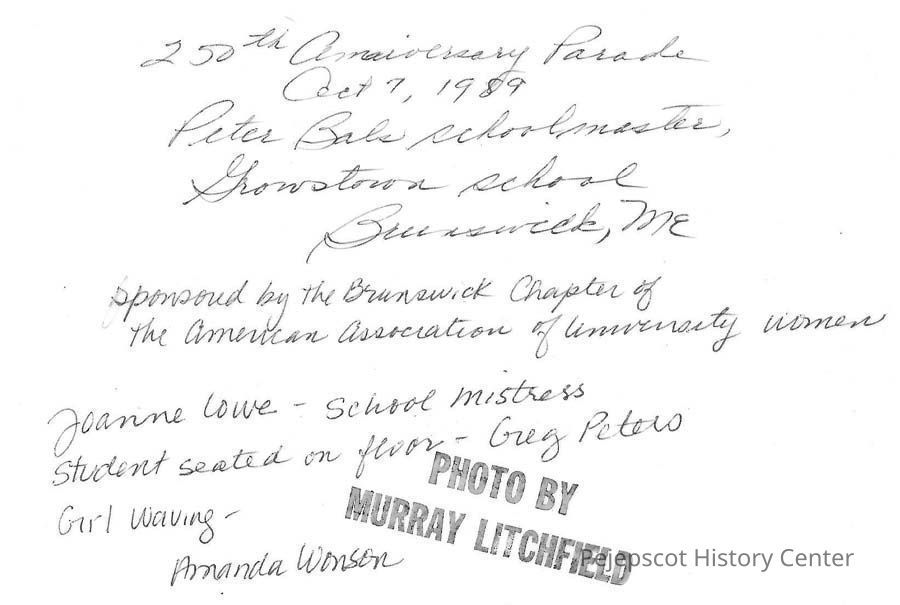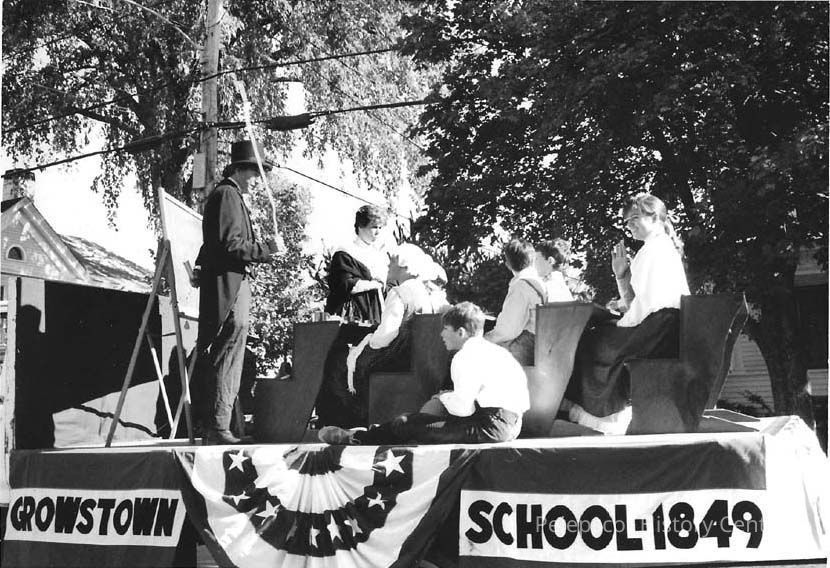 A B/W photo of Growstown School float in Brunswick's 250th Anniversary Parade. 10/7/1989.