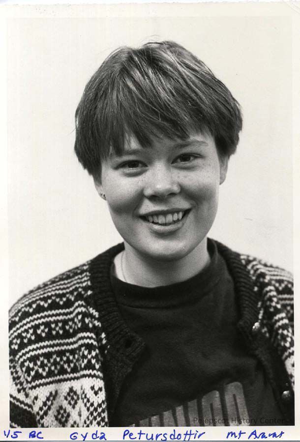 An undated black and white photo of Gyda Petursdottir, a student at Mt. Ararat School in Topsham, Maine.