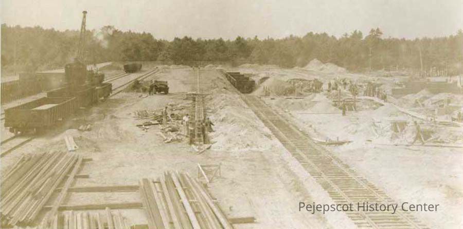 A B/W photograph of the Bath Iron Works Harding plant construction site. Undated