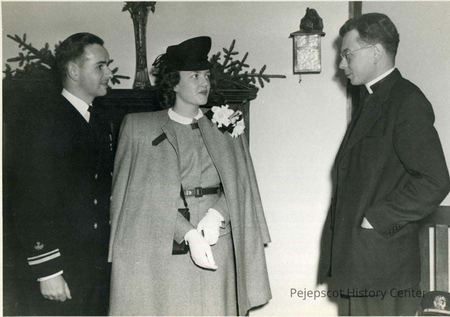A black and white wedding photograph of Harold & Priscilla Eames. Undated