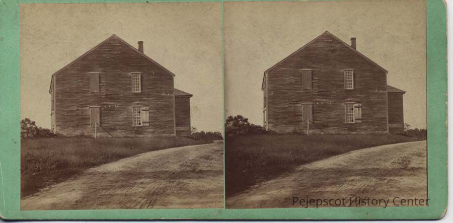 Stereopticon view of Harpswell First Parish Meeting House around 1856. It was later acquired for use as a Town House.