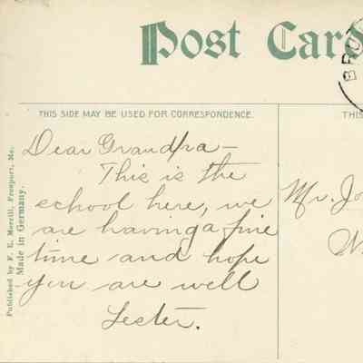 Dear Grandfra - This is the school here, we are having a fine time, and hope you are well. Lester