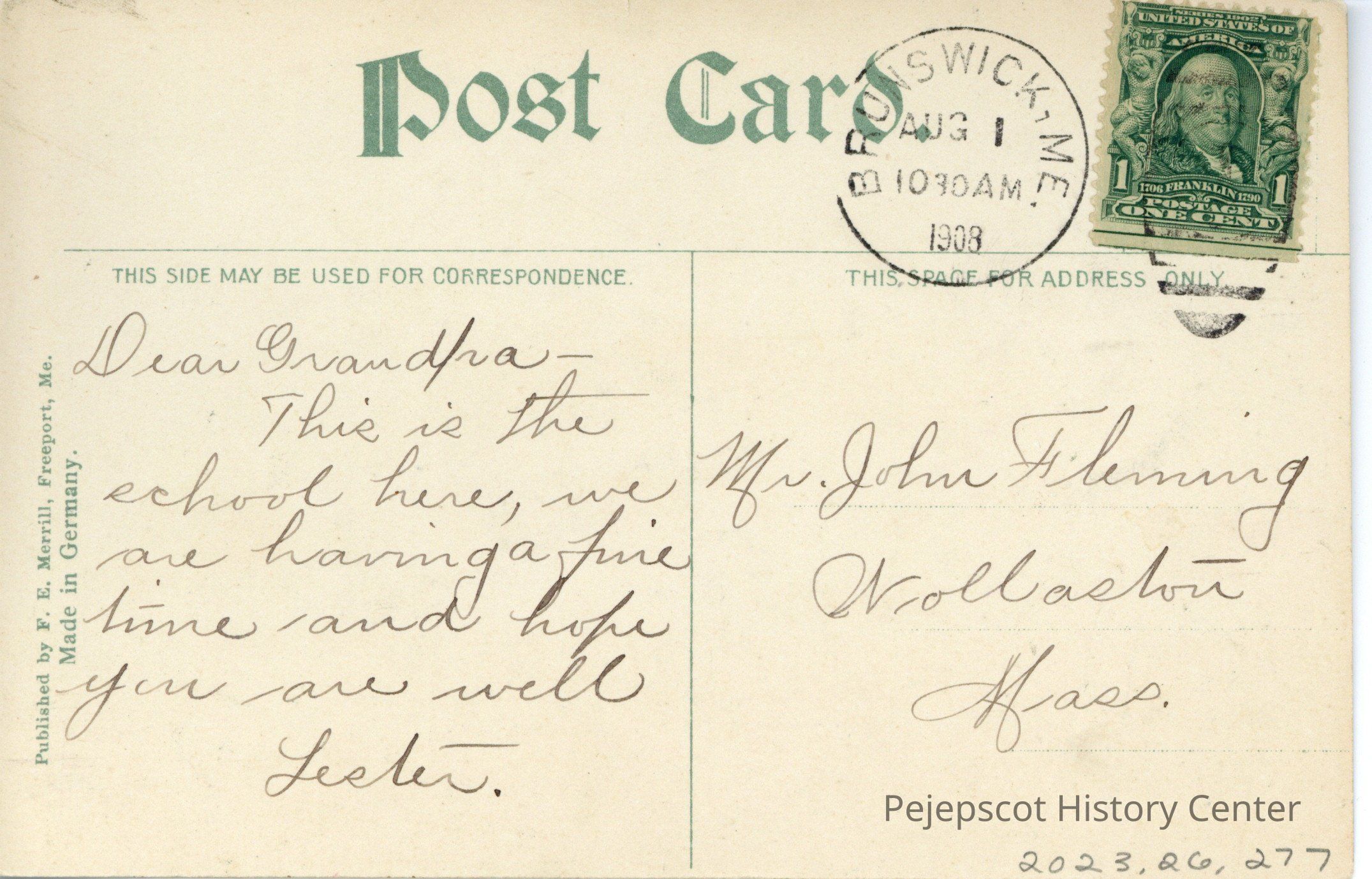 F. E. Merrill, Freeport, MainePlace Printed