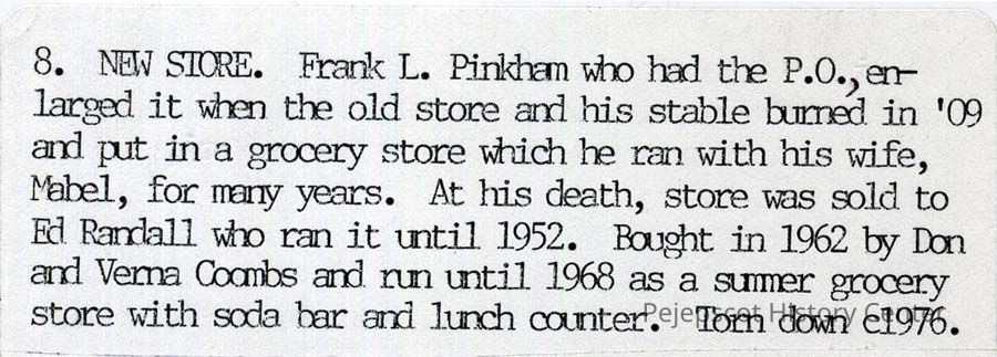 A copy print of the "new" store and post office in Harpswell, Maine. It was run by Frank L. Pinkham for many years. It was torn down in c. 1976.