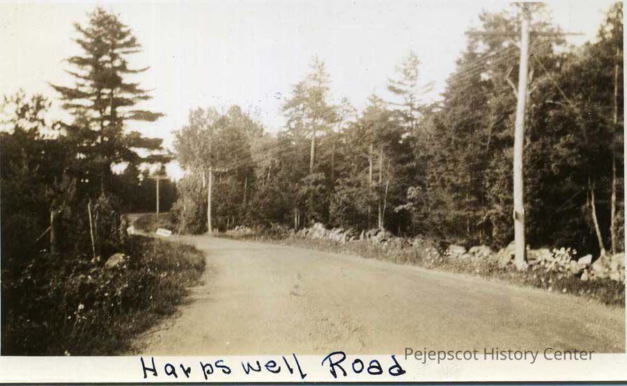 A sepia-toned photo labelled "Harpswell Road." circa 1946