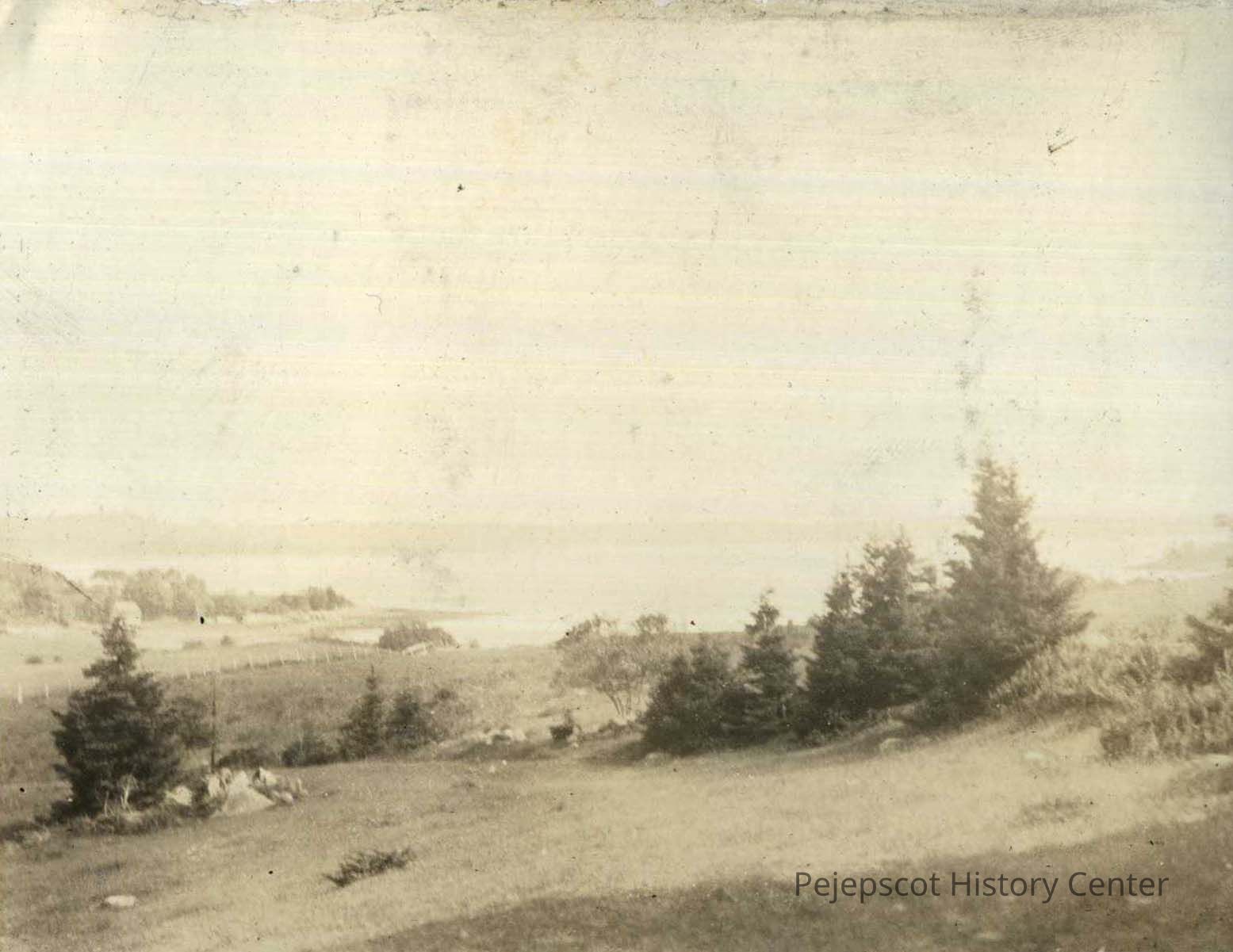 A B/W photograph of a shore line view in Harpswell, ME. Undated.