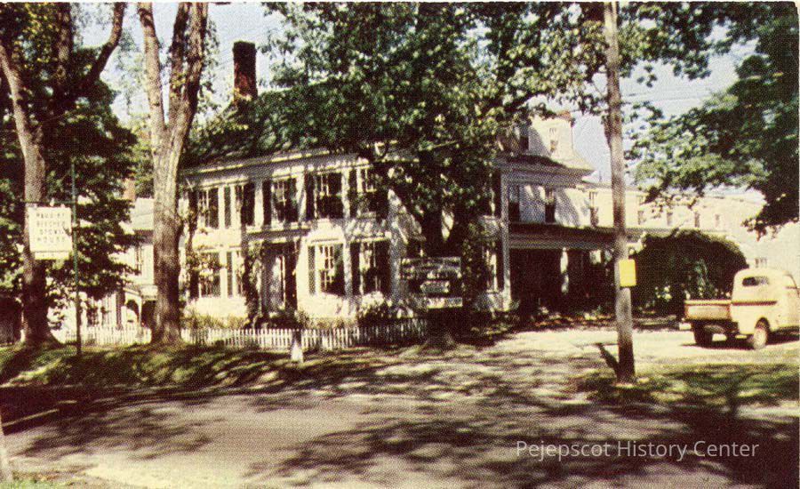 A colored postcard of the Harriet Beecher Stowe House on Federal Street in Brunswick.Collection
