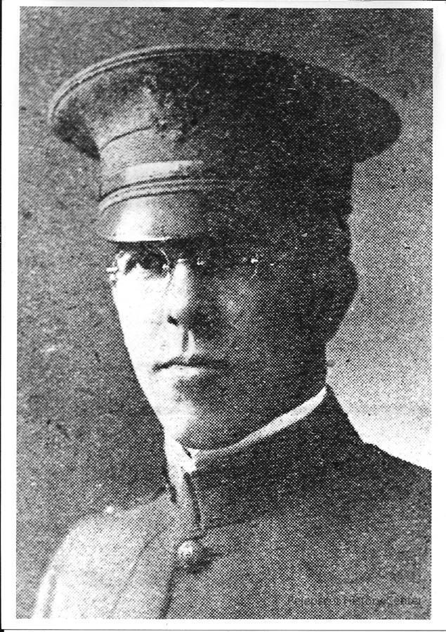 A B/W photograph of Harry L. Lowell. 1st Lt. Company 104 Infantry, Allied Expeditionary Force during WW I. Formerly volunteered with 10th Company Brunswick National Guard Unit (CBNG). Photo is undated.
