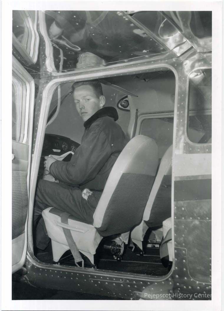 Harry McCarthy at the control of a Cessna 172 airplane.