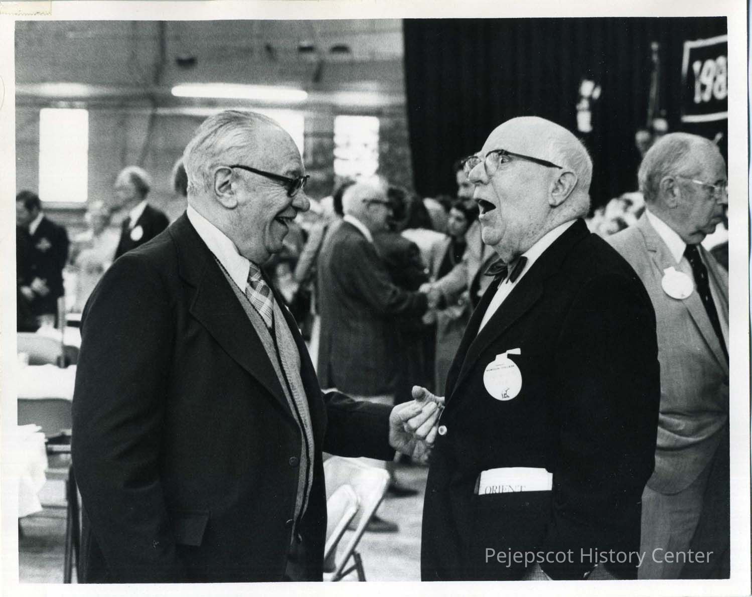 Harry Shulman (on left) and Philip Wilder at a Bowdoin College reunion on May 23, 1981.