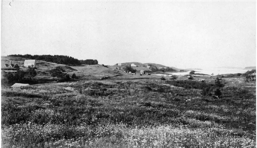 Black & white photograph of Haskell Island ca 1888 looking southwest to the field.
