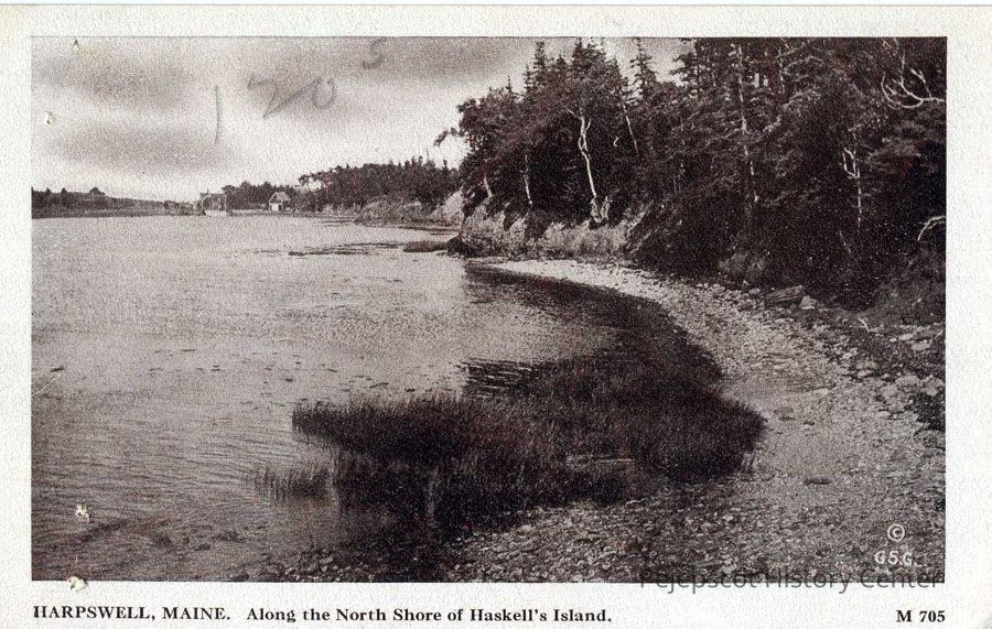A B/W photographic view of the north shore of Haskell's Island.