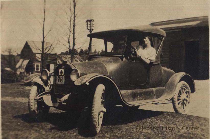 An undated black and white photo of Hazel Howland in Dr. C.W. P. Foss's 1920 Buick.
