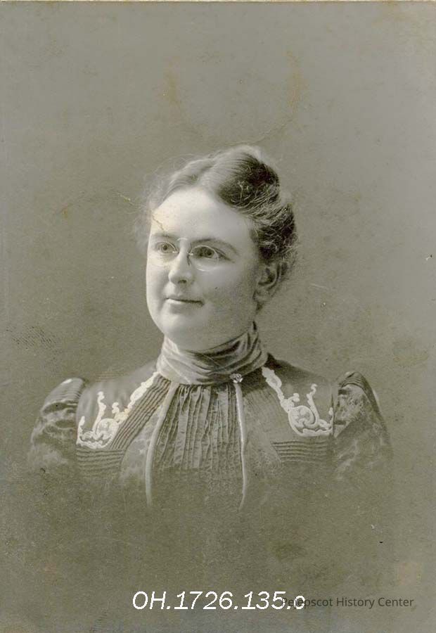 Helen L. Varney was born in Brunswick, ME 05 Aug 1872, daughter of Amos F. and Alice W. (Wyatt) Varney, and great-granddaughter of the founder of Dennison Box Company. She began teaching at Brunswick's (Maine) Bath Street School in 1890, immediately after graduating from high school and retired as Brunswick High School art teacher and supervisor of all of the town's art education programs in 1948. She studied art in several locations, including the Massachusetts School of Art in Boston, the Portland arts center and Bowdoin College. After her retirement from teaching in public schools she continued to give private lessons. During World War II she was involved in arts and crafts programs with the USO. She was a delegate to several art conferences, including the International Arts Congress in Paris in 1937. She died in Portland 06 Jul 1960. Photo not dated.