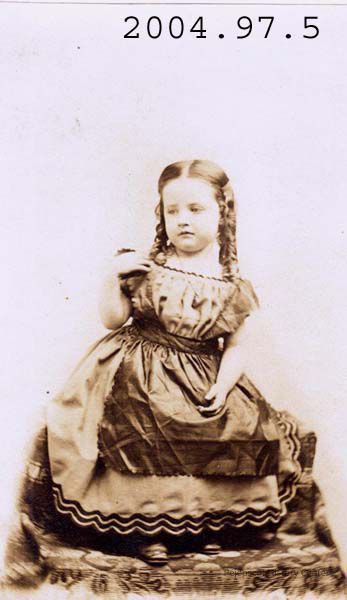 A small b/w photograph of Helen Metcalf as a young girl in curls.