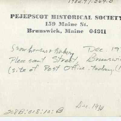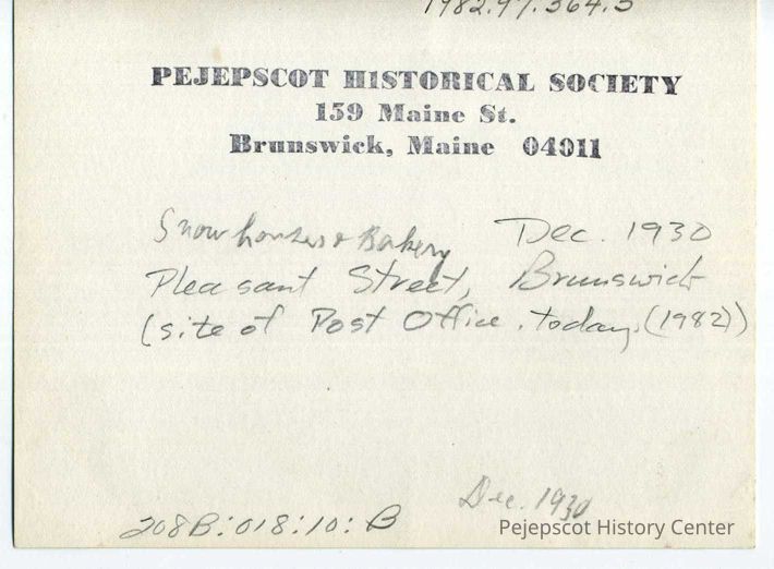 Henry (Harry) Snow house and Bakery, Pleasant St., December, 1930. Currently the site of the U.S. Post Office (2010).