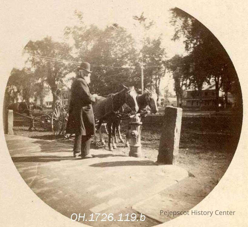 A B/W photograph of Henry Stanwood. The picture was taken looking across the Mall towards Park Row, Brunswick, ME. 08/1889-1890