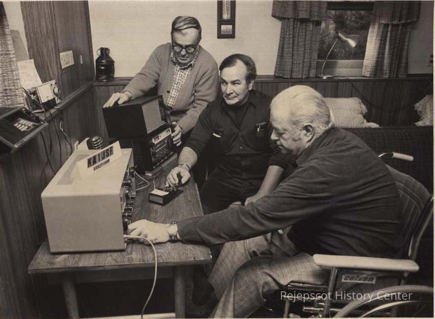 A B/W photographic view of Herbert A. Merrill Jr. (in wheel chair). This photo was published 1/11/1983.